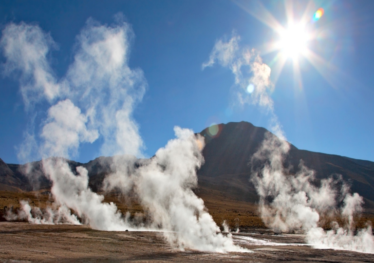 Partenza prima dell’alba (4.00 del mattino) per i Geiser del Tatio. Arrivo e visita guidata del campo geotermale per osservare le imponenti “fumarole” che raggiungono il loro massimo splendore prima dell’alba. Colazione di fronte ai Geiser e rientro a San Pedro de Atacama, lungo il percorso si avrà una spettacolare vista dei Vulcani Tocorpuri e Sairecabur. Nel pomeriggio visita della cordigliera del sale, la valle di Marte e la Valle della Luna da dove si potrà godere di un meraviglioso tramonto sul deserto di Atacama. Rientro in hotel e pernottamento.