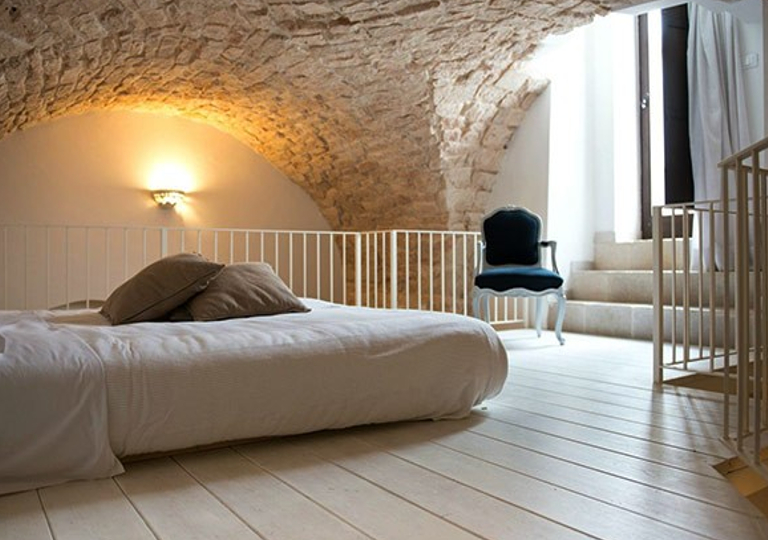 -Luxury Flat: ampi spazi insieme al bianco dominante della pietra, degli intonaci e delle travi e la grande vasca dromassaggio circolare sono le caratteristiche delle top suite. Arredi di charme e tutte le dotazioni utili quali aria condizionata, riscaldamento, frigobar, TV sat, telefono diretto, internet wi-fi gratis, cassaforte.