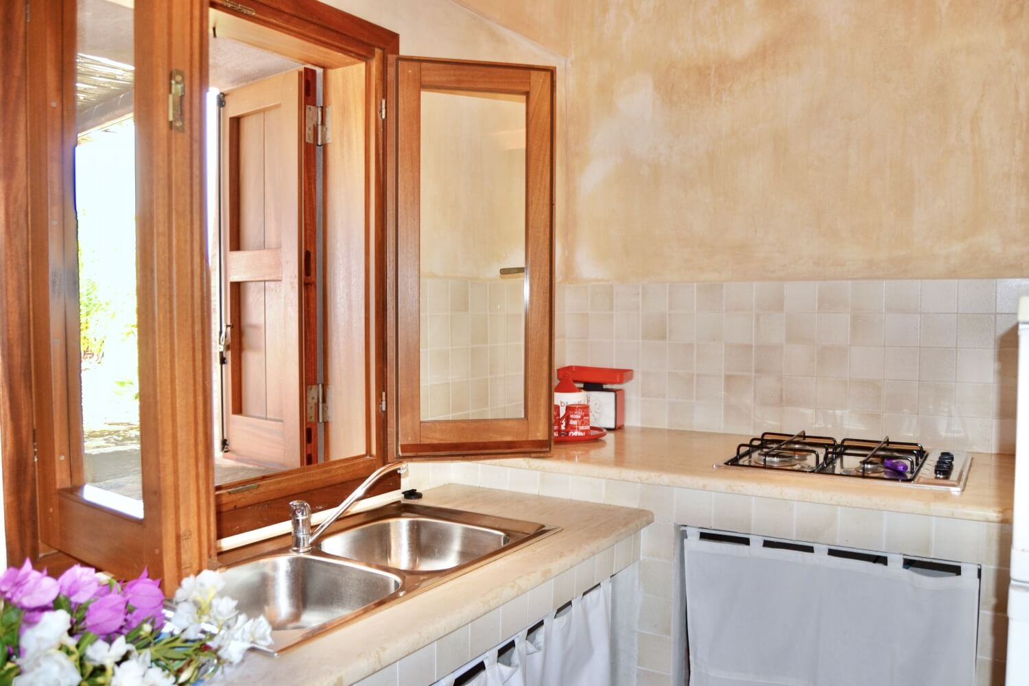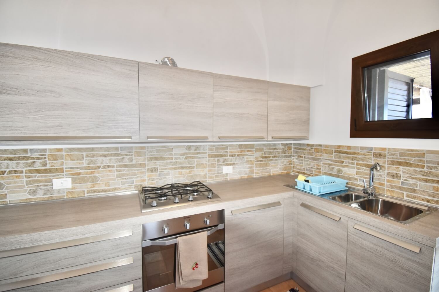 Descrizione: Il dammuso moderno offre spazi ampi, una cucina in muratura e un'area relax, ideale per coppie o gruppi. Gli esterni, con privacy garantita, invitano a gustare cene all'aperto e a godere della tranquillità, a pochi passi dal mare.