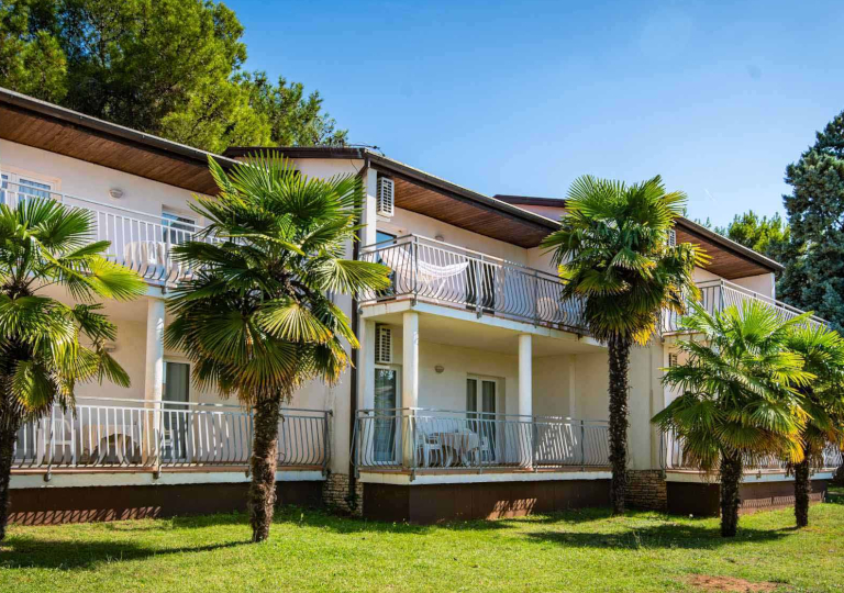 Composto da 64 appartamenti modernamente arredati, in file da 4 a 8 appartamenti disposti a cerchio con parco centrale. Tutti gli appartamenti sono stati recentemente rinnovati con ampi terrazzi, modernamente e arredate in modo confortevole per fornire comfort di alta qualità per una vacanza piacevole. I servizi includono TV satellitare, cucina completamente attrezzata con macchina per il caffè, forno a microonde e cassaforte. Tutti gli appartamenti sono climatizzati. Tutti gli appartamenti sono con doccia.