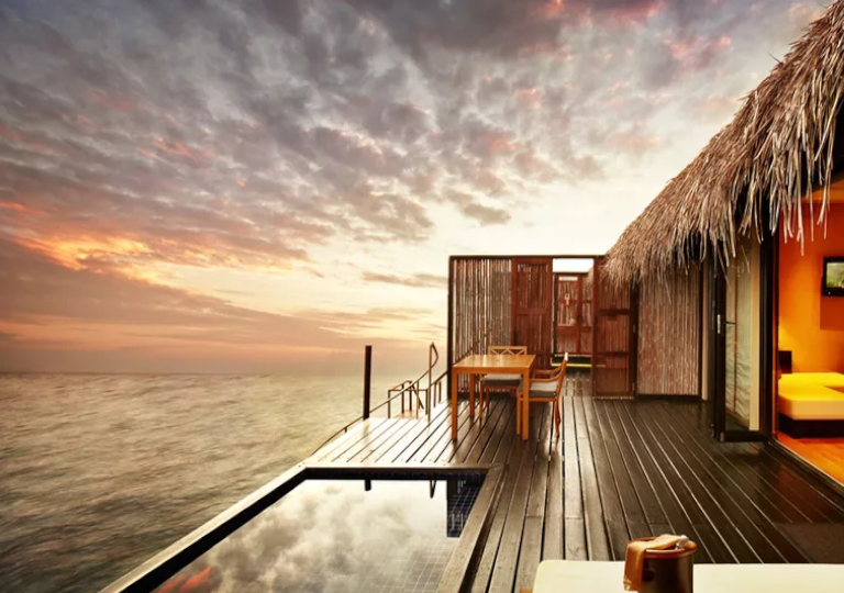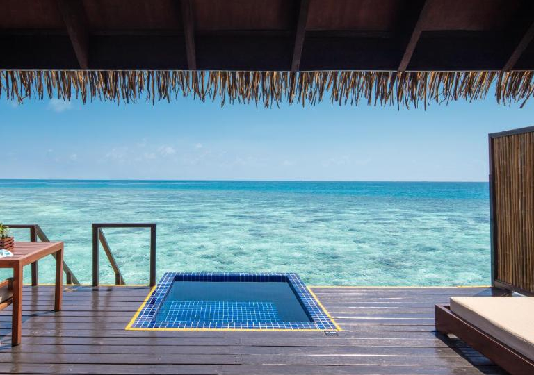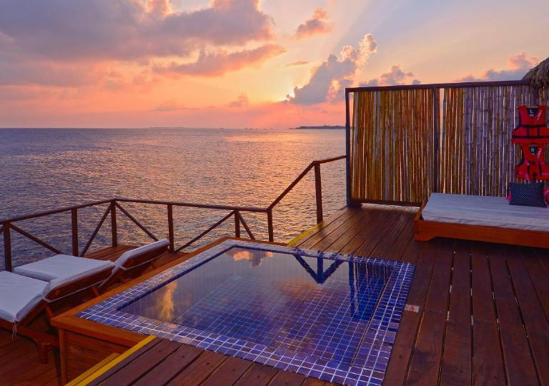 Esistono tre tipi di Water Villa: La Sunrise con vista su Malé, la Sunset con vista sull’ Oceano e la Honeymoon con una terrazza.