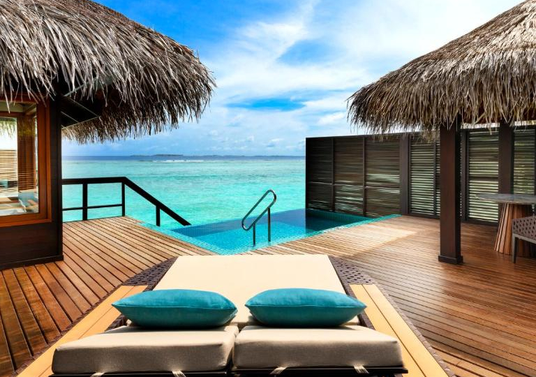 -Ocean Pool Villa: le Ocean Pool Villa spiccano per la loro grande piscina con vista alla laguna e per la loro posizione in una zona riservata e privata dell’isola. Con una superficie di 220 m2 e capacità per ospitare 2 adulti ed un bambino, dispongono di tutti i lussi e le comodità al puro stile Sheraton.