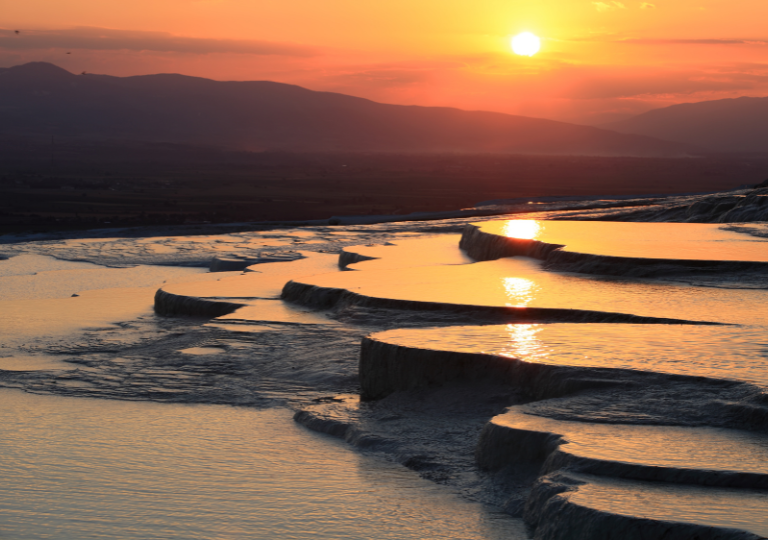 Possibilità di partecipare all’escursione (facoltativa, a pagamento) di Jeep Safari, uno dei modi migliori per godersi i paesaggi unici della Cappadocia, le sue valli e l’incredibile mix di formazioni rocciose e dolci colline. Un itinerario ricco di tappe suggestive fotografare i paesaggi e le caratteristiche mongolfiere. Prima colazione in albergo. Partenza per Pamukkale attraverso valli e catene montuose. Visita del Caravanserraglio di Sultanhani (XIII secolo), oggi museo. Pranzo in ristorante. Proseguimento con la visita dell’antica Hierapolis che, distrutta da un terremoto e ricostruita nel 17 d.C., ebbe il suo massimo splendore nel II e III secolo d.C. Visita di Pamukkale, dove i visitatori saranno sorpresi di vedere sul pendio della collina e addossate le une alle altre, decine di enormi vasche formatesi dal lento e millenario scorrere dell’acqua calcarea. Sembra che il tempo si sia fermato e le cascate di una gigantesca fontana siano pietrificate come suggerisce il nome del luogo Pamukkale che tradotto in italiano significa “fortezza di cotone”. Trasferimento in albergo (Hotel Lycus River o similare) e sistemazione in camera. Cena in hotel e pernottamento. Possibilità di un bagno nella piscina termale dell’hotel.