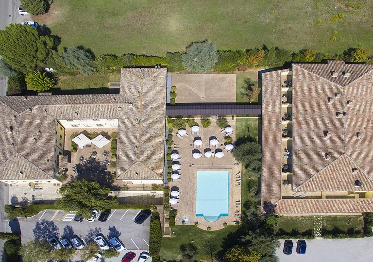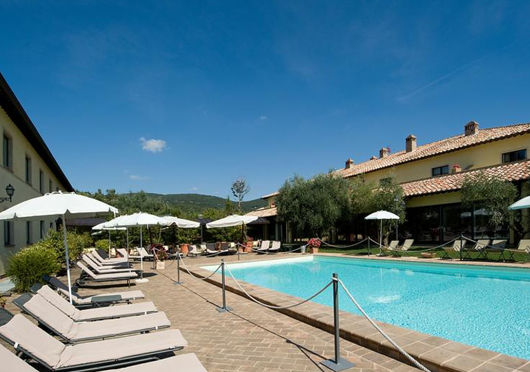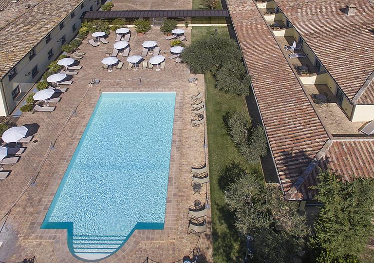 Nel cuore del Relais, riparata dai terrazzini e dalle siepi che garantiscono la massima privacy, la piscina è circondata da una accogliente area solarium con lettini e sdraio a disposizione degli ospiti e possibilità di servizio bar direttamente a bordo vasca.